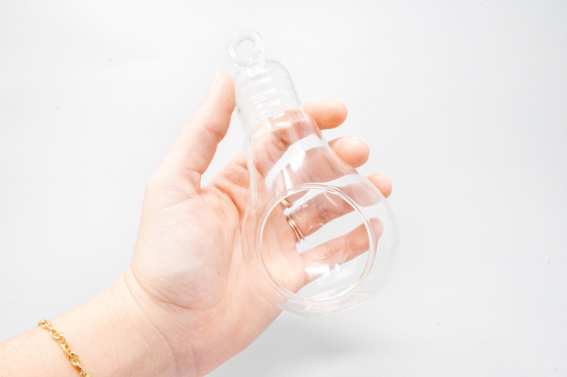 Our light bulb shaped glass terrariums are sure to turn heads. These adorable kits come with crushed white stone, an assorted tillandsia air plant and terrarium. They are sure to brighten up any space. They have a hook for hanging or you can place them on their flat bottom.