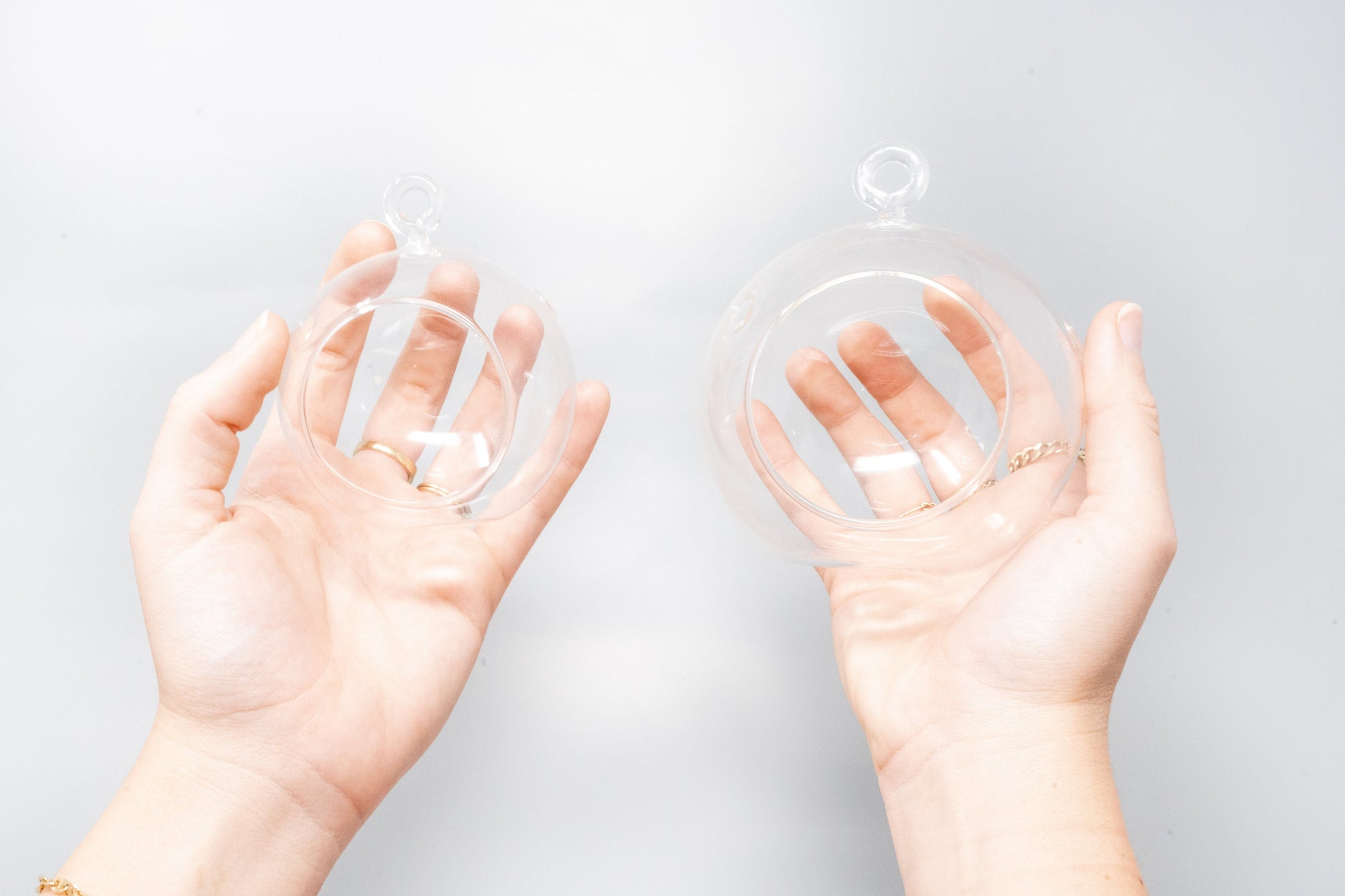 These cute sandy mini flat bottom glass globe terrariums are wonderful gifts, favors, or decorations. The kits include black or white sand and ionantha. Just pour the sand in and place the air plant inside. It is that easy!