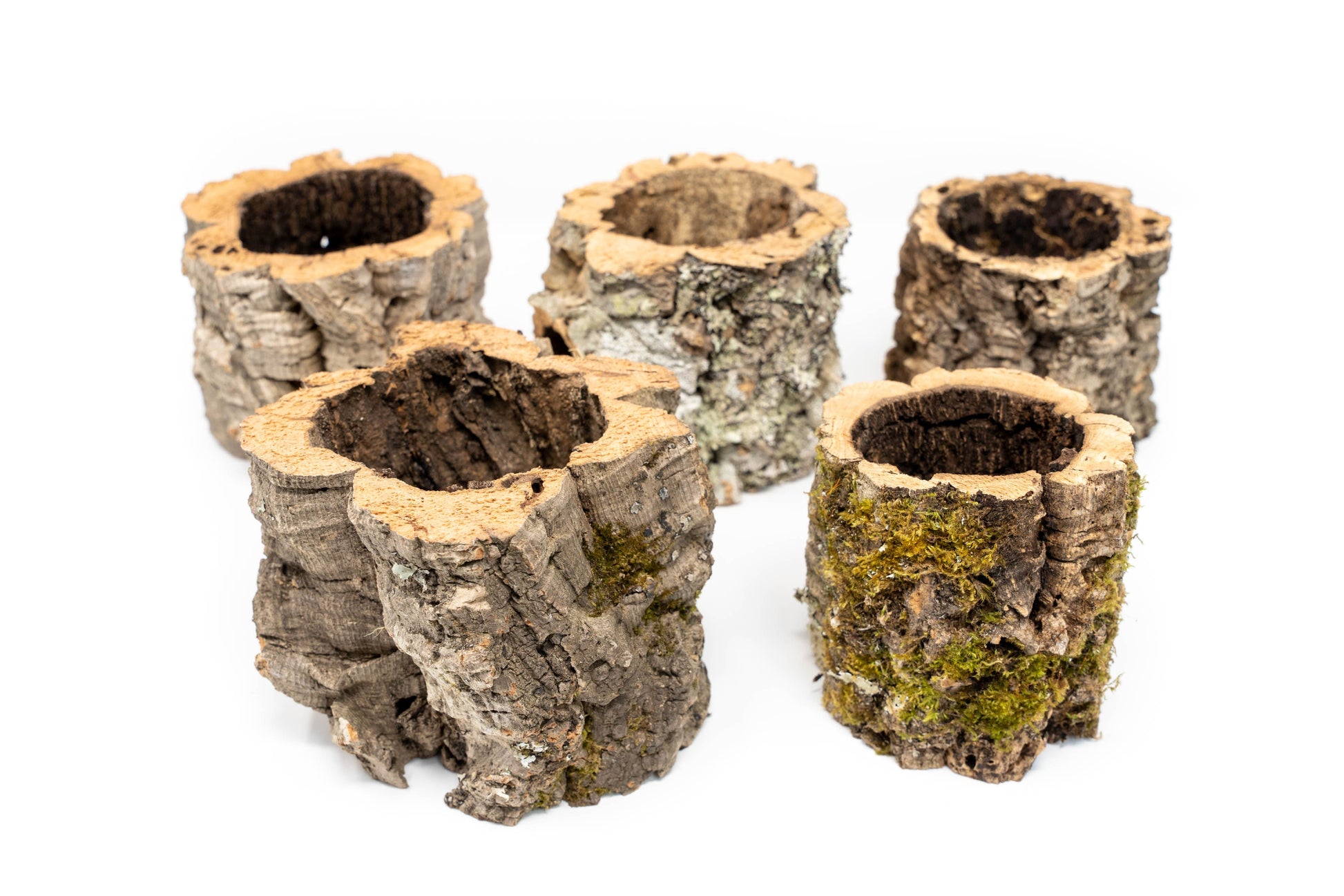 These custom natural cork bark planters are specifically selected for their beautiful coatings of natural moss and lichens. Each planter has an open bottom to promote air flow for the health of your plant and will vary in shape and size.